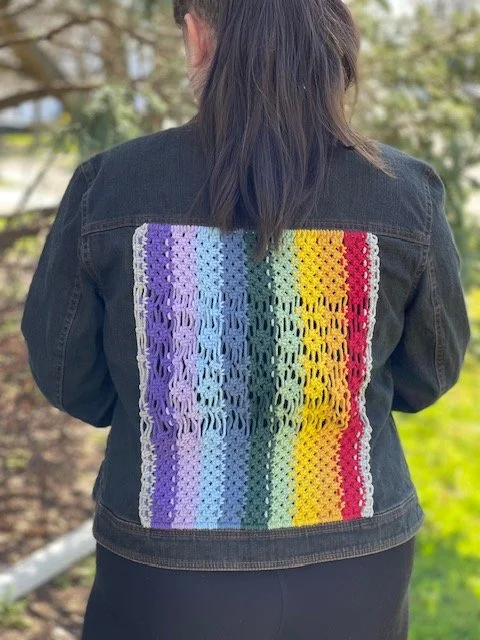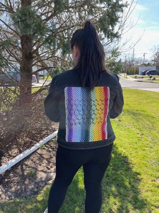 All denim jackets are upcycled. 85% of materials used to create these one-of-a-kind pieces of wearable art are purchased from women owned small businesses.